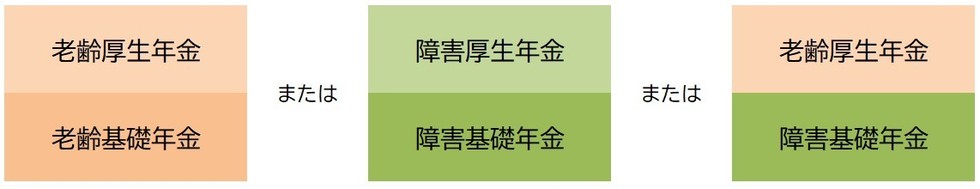公的年金には「老齢年金」「障害年金」「遺族年金」の3つがありますが、“一人一年金”が原則です。
